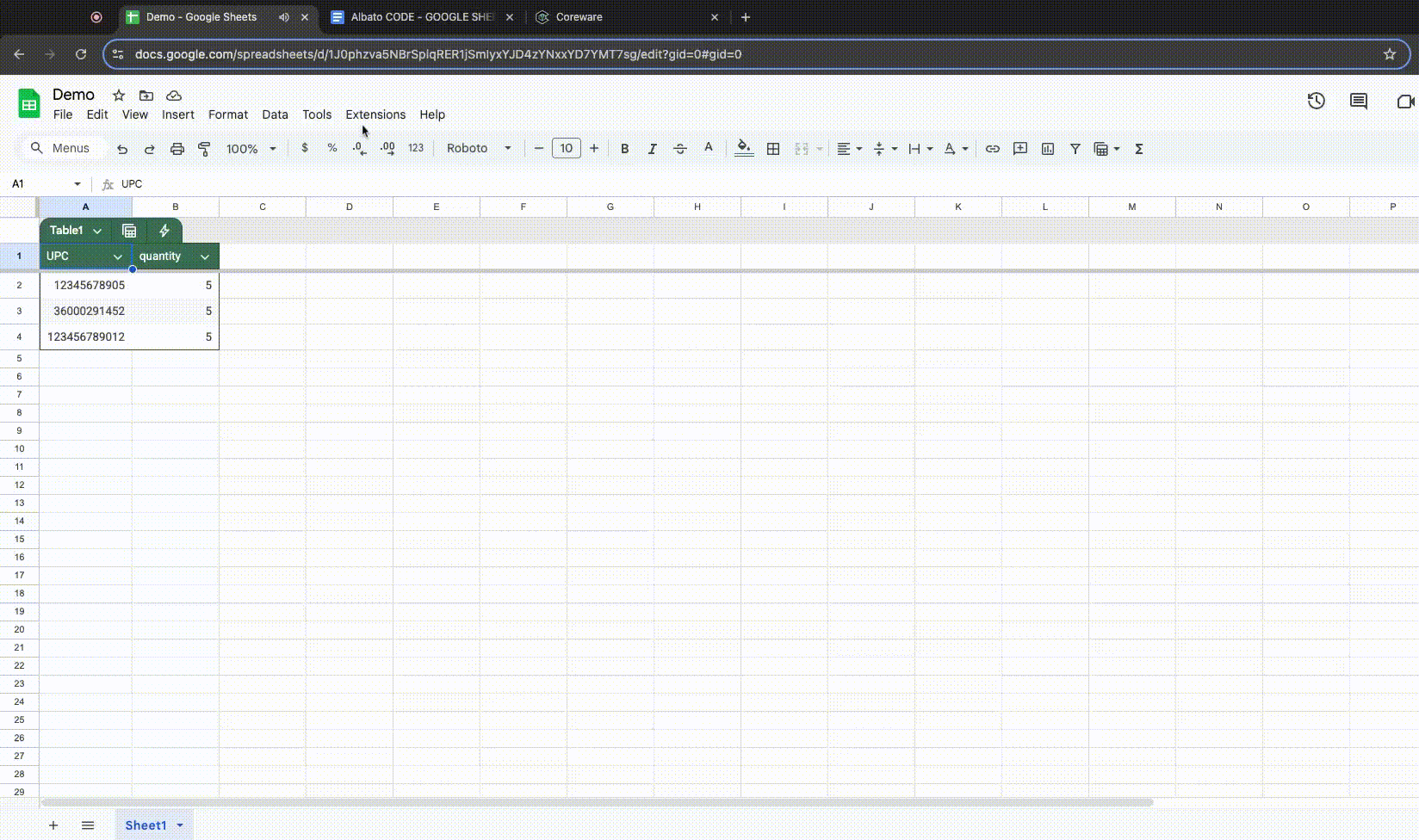 UPCcolumn. - Request - Quantity Field: Expand Google Sheets: Find a row by number, and then select the